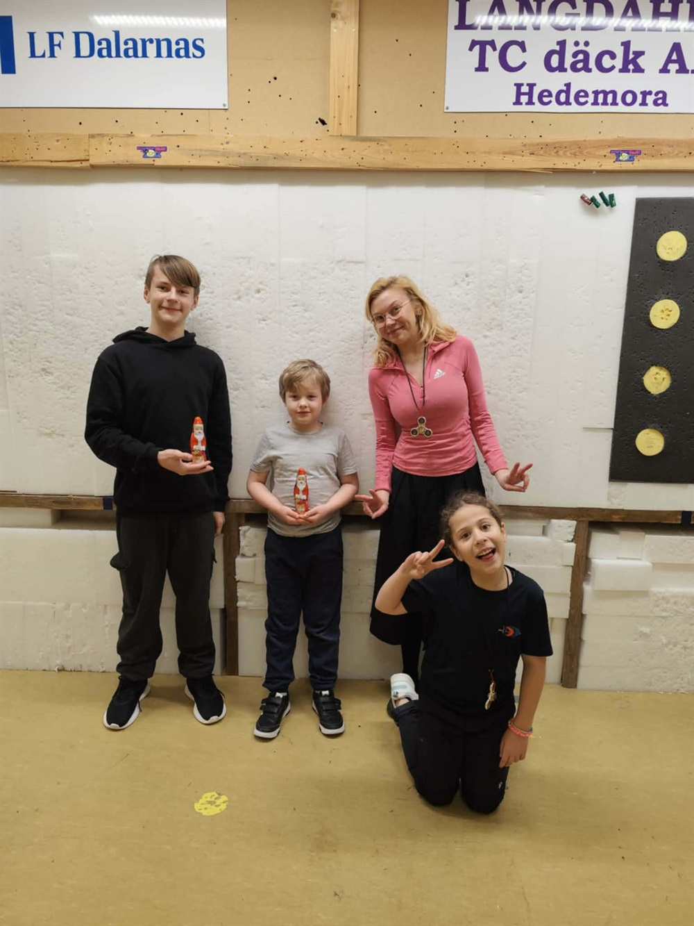 "Team Thor och Oliver" till vänster i bild, och Mest Peppande Lykke och Violet till höger. Ni ser ju peppen och tomtigheten... =)